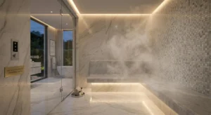 In luxury villa projects, steam rooms function as premium architectural wellness assets that directly influence property valuation. Buyers do not just want steam; they want a high-end spa experience.