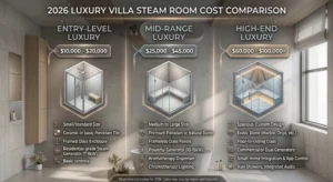 • Typical steam room cost: $5,000 – $15,000 per villa
