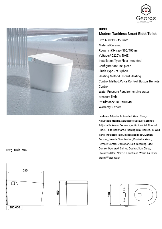 093 Modern Tankless Smart Bidet Toilet for Hotels and Residential Projects