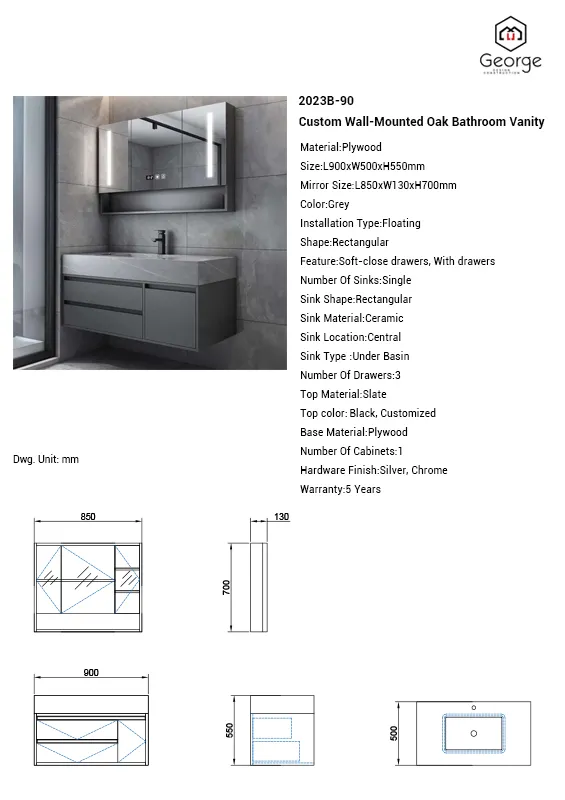 2023B-90 Waterproof Plywood Floating Bathroom Vanity Mirror Cabinet for Small Apartment