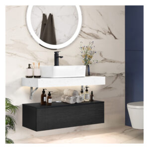 The floating bathroom vanity delivers sleek modern design with practical function. A durable stone-look top paired with clean lines creates a stylish focal point. Soft-close drawers provide generous storage to keep your bathroom neat and clutter-free. With its water-resistant finish and streamlined silhouette, this vanity perfectly balances elegance and everyday convenience.
