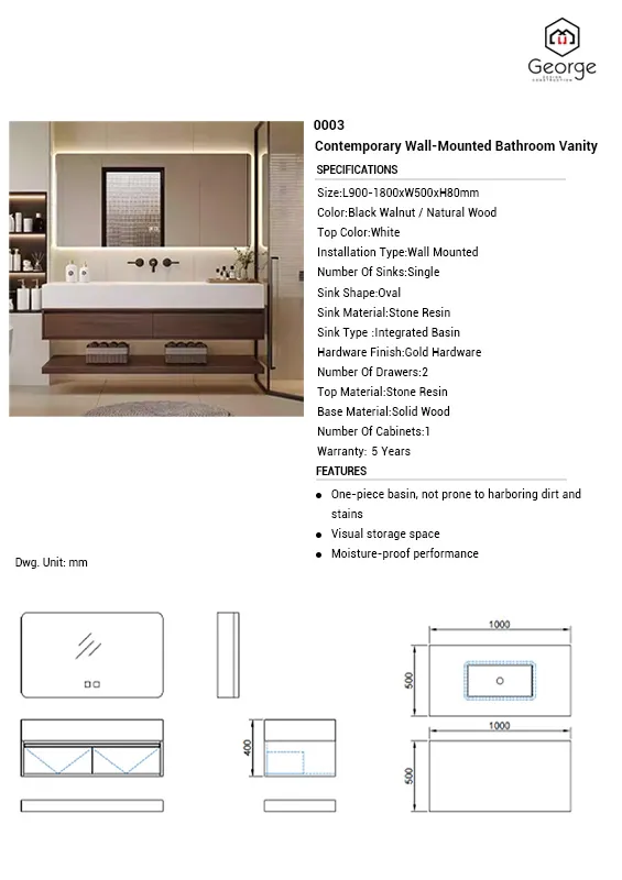 Feature One-piece basin, not prone to harboring dirt and stains. Visual storage space, moisture-proof performance.