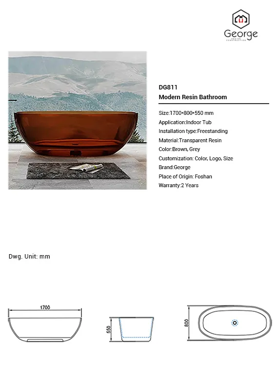 DG811 Modern Resin Bathroom Transparent Bathtub Indoor Spa