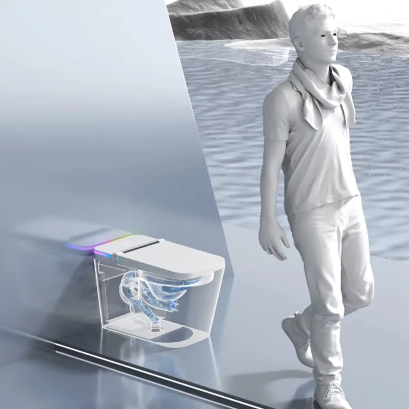 The F5 tankless bathroom smart toilet is designed to enhance everyday hygiene and comfort in modern residential and hospitality bathrooms. Its powerful tankless flushing system delivers efficient performance while saving space and water. Key features include a heated seat for year-round comfort, an innovative foam shield that helps reduce splashing and odors, and warm air drying for a hands-free, hygienic experience. Additional intelligent functions ensure smooth operation and easy maintenance. With a clean, contemporary design, the F5 smart toilet offers a practical balance of advanced technology, comfort, and modern bathroom aesthetics.
