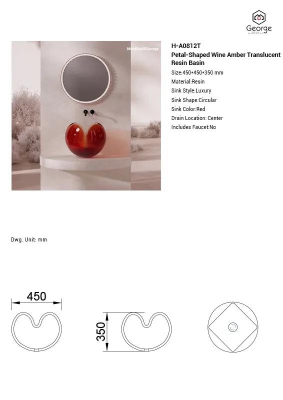 Flower Washbasin H-A0812T — Petal-Shaped Wine Amber Translucent Resin Basin, Integrated Molding, 2025 MUSE Design Silver