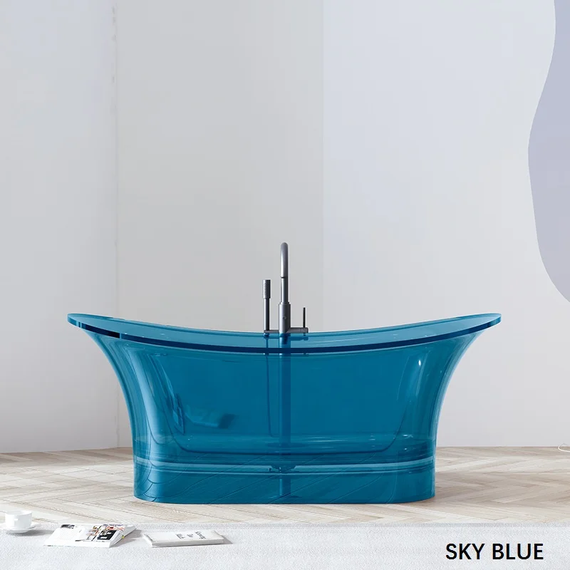 Transform any bathroom into a statement of modern artistry with this Transparent Resin Freestanding Bathtub. Crafted from high-quality transparent resin, it showcases a striking visual clarity and a lightweight yet durable structure. Its freestanding design allows flexible placement, making it the centerpiece of any luxury villa, boutique hotel, or upscale spa. Ergonomically contoured for comfort, it delivers a unique bathing experience where light, space, and water interplay beautifully. Minimalist in design yet visually impressed, this bathtub merges avant-garde aesthetics with practical durability, offering a sophisticated solution for projects seeking innovation and exclusivity.