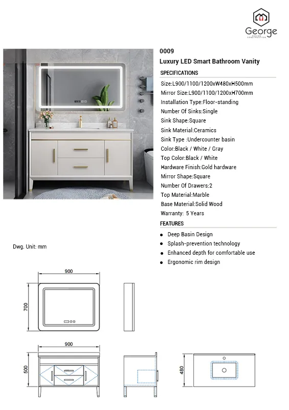 Transform your bathroom into a luxurious sanctuary with our premium bathroom vanity set, featuring a stunning marble countertop and sophisticated LED mirror. This modern masterpiece combines elegance with practical functionality.
