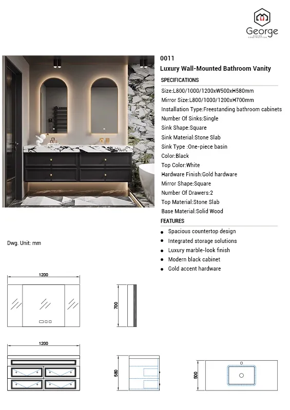 Experience unparalleled luxury with our sophisticated wall-mounted bathroom vanity, featuring a stunning rock slab basin and elegant arched LED mirrors. This masterpiece combines Italian-inspired design with cutting-edge technology.