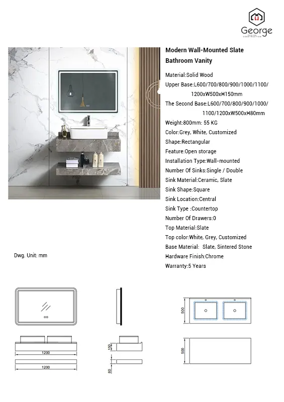 Modern Wall-Mounted Slate Bathroom Vanity with Open Storage and Countertop Ceramic Basin