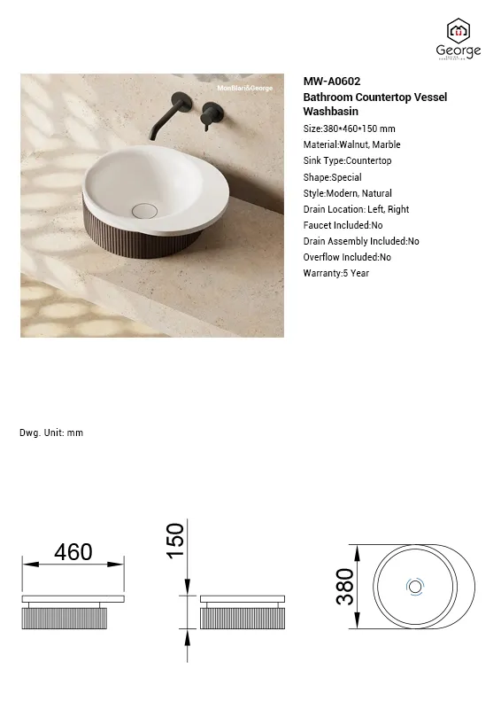MonBlari FOREST Series MW-A0602 Bathroom Countertop Vessel Washbasin Walnut Surface Design