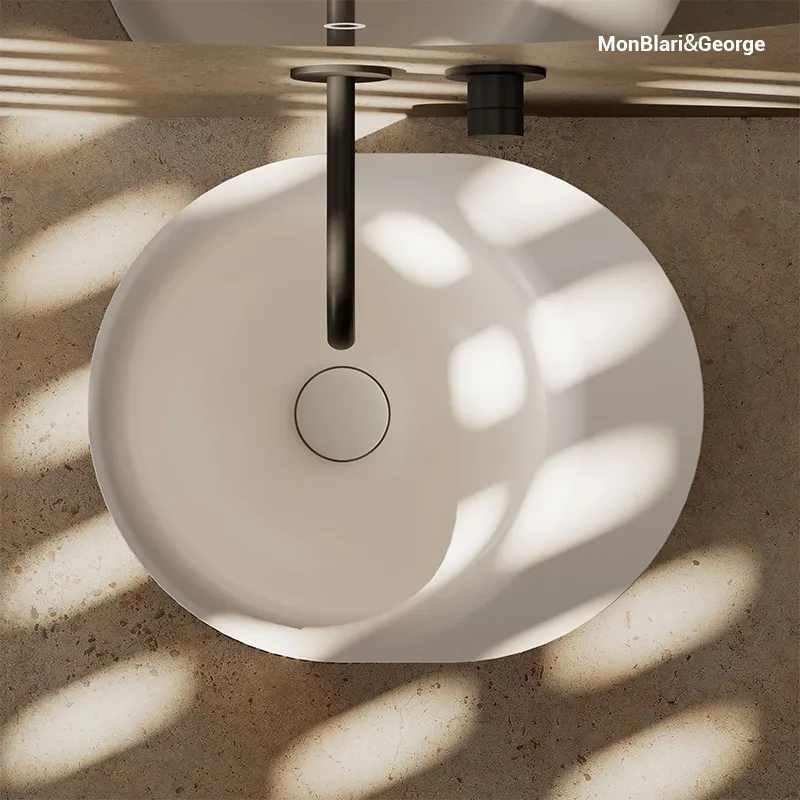 Seamless Integration: Designed as part of the basin’s form, maintaining sculptural purity and aesthetic continuity.