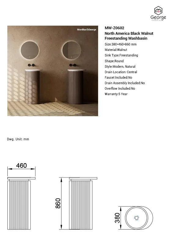 MonBlari FOREST Series MW-Z0602 North America Black Walnut Freestanding Washbasin for Bathroom, Garden and Living Room