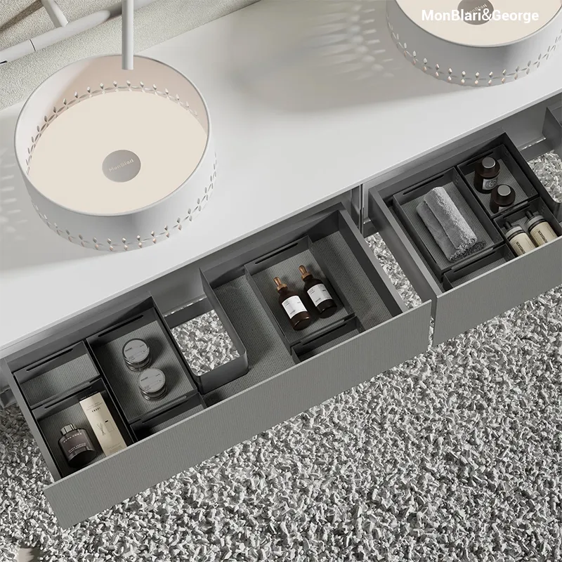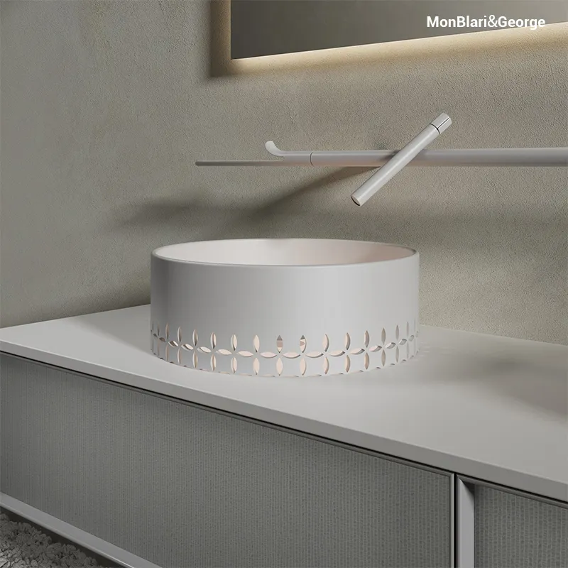 The MonBlari Linglong Series Bathroom Vanity extends the artistic language of the Linglong Collection, merging oriental elegance with modern design discipline. Created for high-end residential and hospitality environments, it embodies MonBlari’s dedication to precision craftsmanship, material innovation, and serene spatial balance.