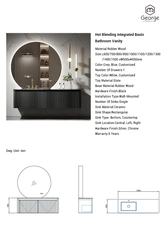 This wall-mounted vanity embodies contemporary elegance with a sleek fluted design and minimalist structure. Crafted with a durable sintered stone or slate countertop and an integrated ceramic basin, it offers both style and practicality. Paired with a large LED mirror, it enhances the bathroom with a refined, luxurious atmosphere.