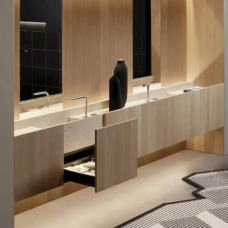The vanity can be installed within a niche or mounted on the wall, and is available in cabinet-integrated or wall-hung versions. Each option offers a clean, uncluttered look while meeting different spatial and functional needs.