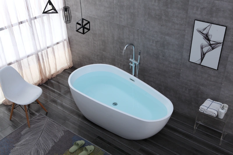 Our freestanding soaking bathtub combines elegant design with durable acrylic construction, ideal for hotels, apartments, and residential projects. The smooth, high-gloss surface is easy to clean and resists scratches and fading, ensuring long-lasting beauty. Its ergonomic shape provides deep, comfortable immersion for full-body relaxation. Lightweight yet sturdy, it’s easy to install and compatible with various bathroom styles. A perfect choice for wholesalers and contractors seeking quality, comfort, and timeless appeal in modern bathroom design.