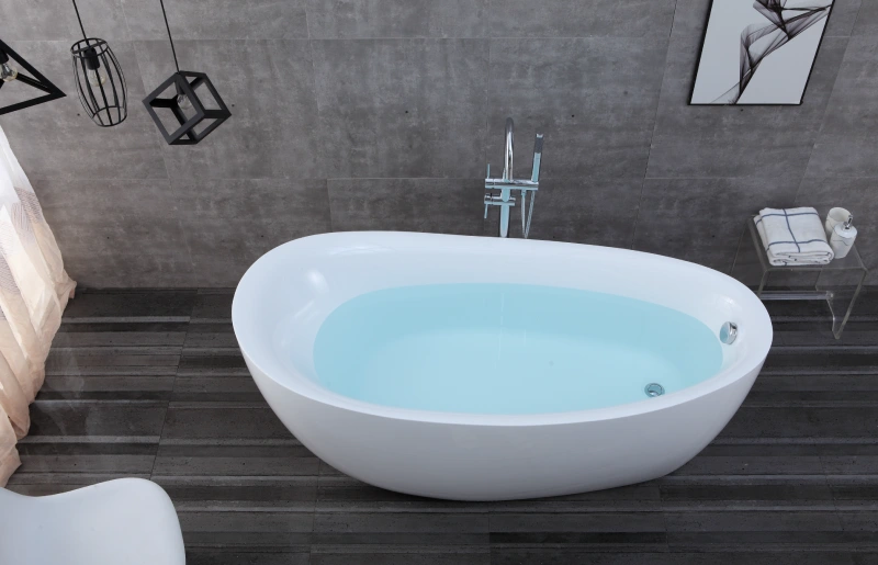 OMQ-91725 Freestanding Acrylic Bath Tub Spacious Interior Comfort Curve Backrest for Full-Body Relaxation