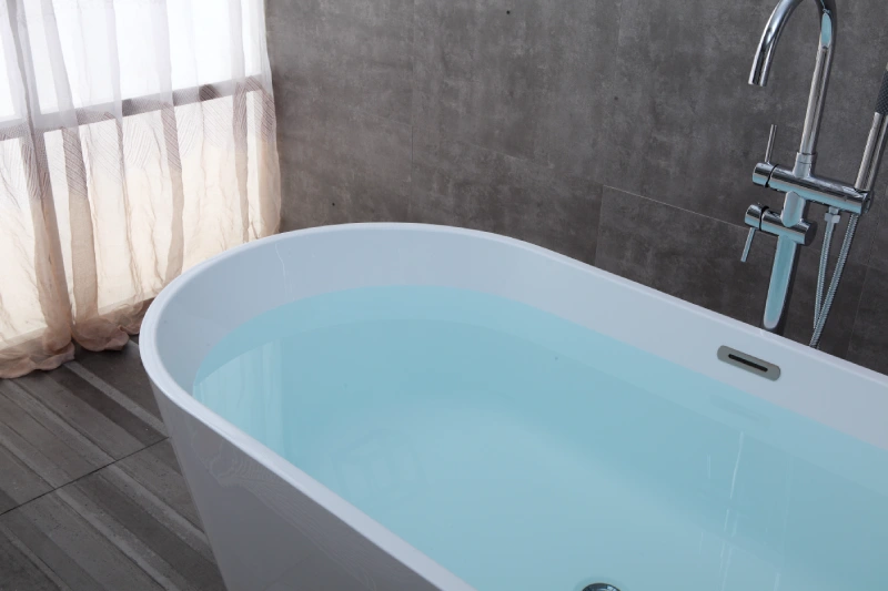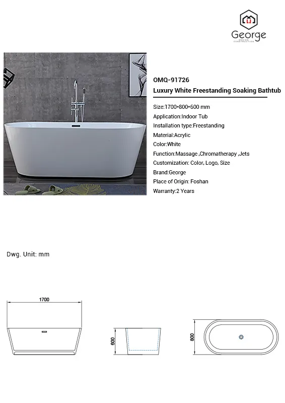 OMQ-91726 Luxury White Freestanding Soaking Bathtub Durable Acrylic Deep Tub for Bathroom Remodeling