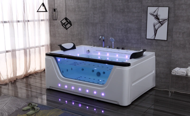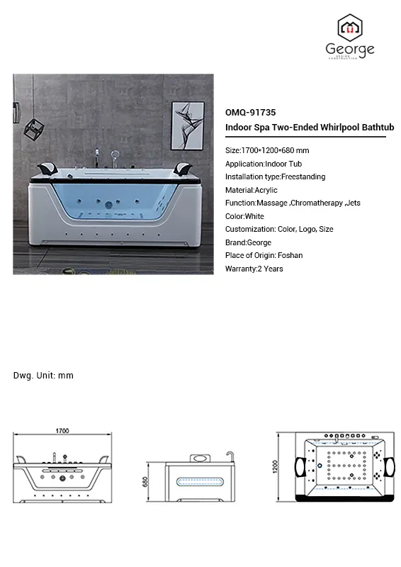 OMQ-91735 Indoor Spa Two-Ended Whirlpool Bathtub with Thermostatic Control Hydro Jets and Built in Ozone Sterilization