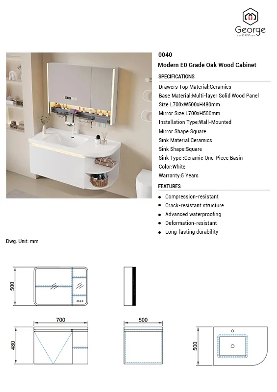 Premium Wall-Mounted Bathroom Vanity with Integrated Basin – Modern E0 Grade Oak Wood Cabinet