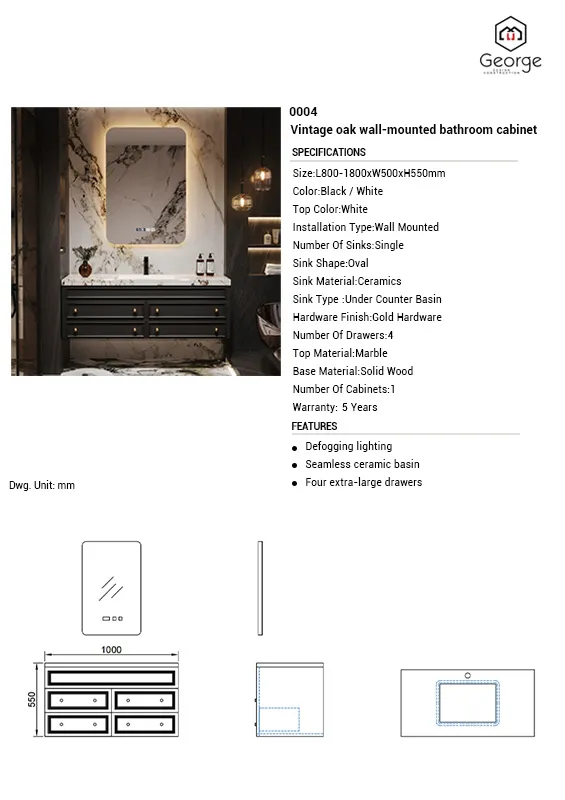 | Feature | Defogging lighting, seamless ceramic basin, four extra-large drawers |