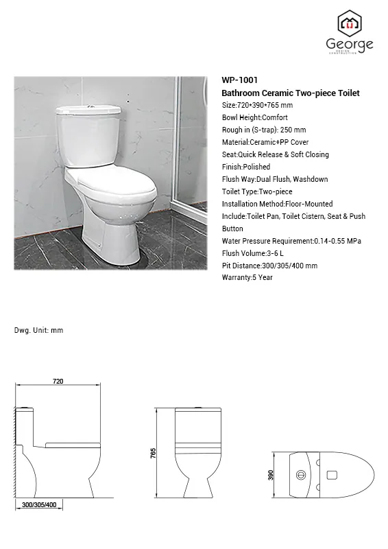 WP-1001 Bathroom Ceramic Two-piece Toilet Freestanding Toilet Soft-Close Cover