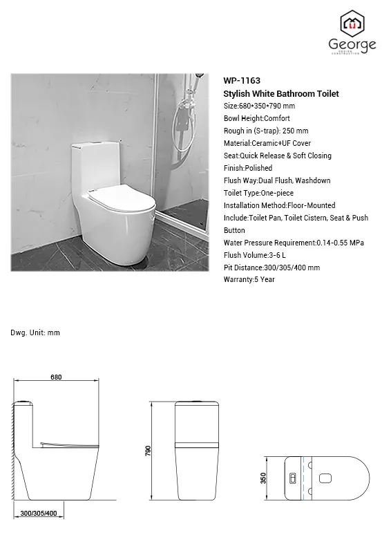 This standard toilet combines practicality and comfort in a sleek, durable design. Its high-temperature glazed surface resists stains and bacteria, making cleaning effortless. The powerful siphonic flush delivers a quiet yet thorough performance, ensuring complete cleanliness with every use. An ergonomically curved seat provides long-lasting comfort, while the water-saving system enhances efficiency. Ideal for both residential and commercial spaces, it brings hygiene, durability, and everyday convenience together seamlessly.