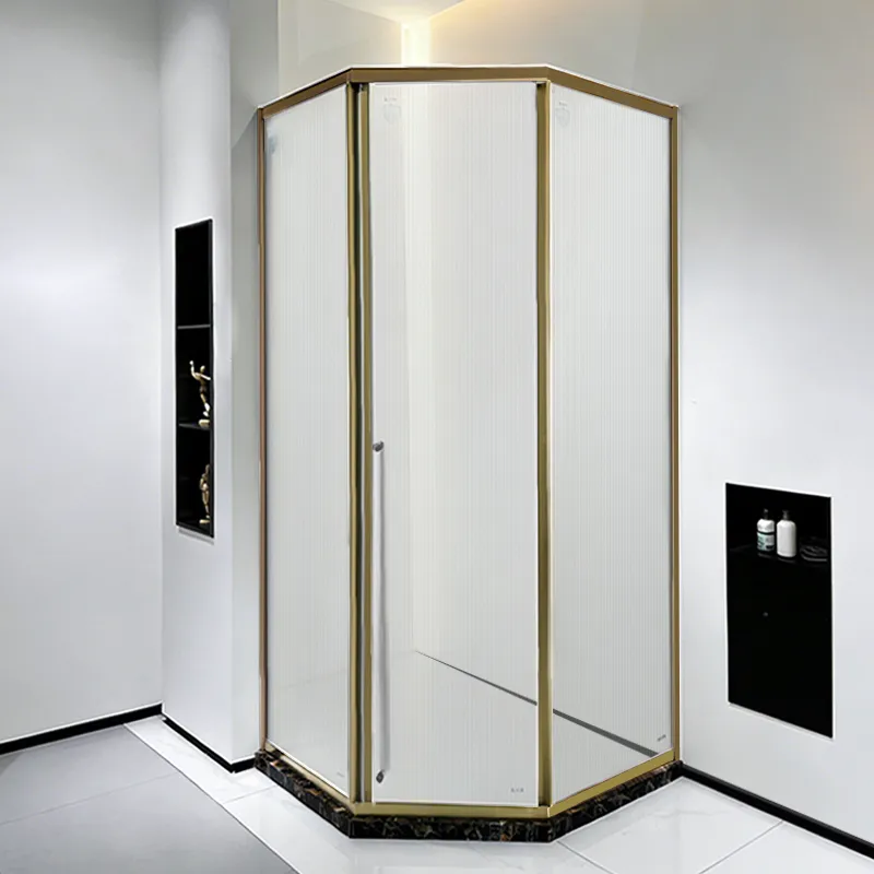 The ZS15921 Neo-Angle Shower Enclosure combines ultra-clear fluted tempered glass with a brushed-gold 304 stainless steel frame to deliver a refined, modern luxury look. Its 180° pivot-door design maximizes space efficiency, while the slim frame and premium metal finishing create a bright, elegant, and durable shower solution for contemporary bathrooms.