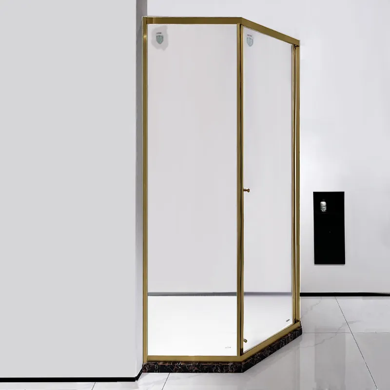 ZS15921 Brushed Brass Neo-Angle Corner Shower Enclosure with Hinged Door — Tempered Frosted Glass, Minimal Frame